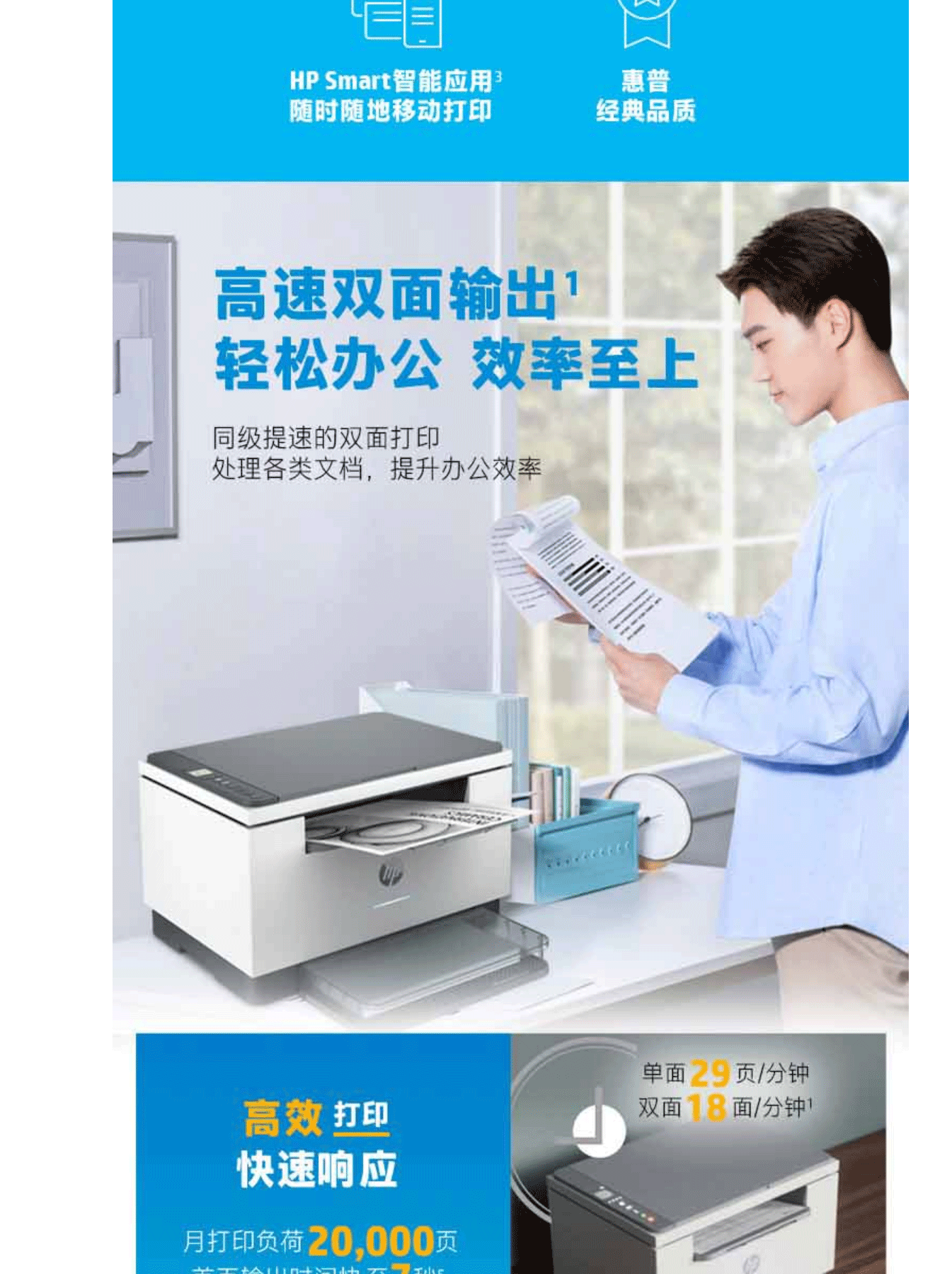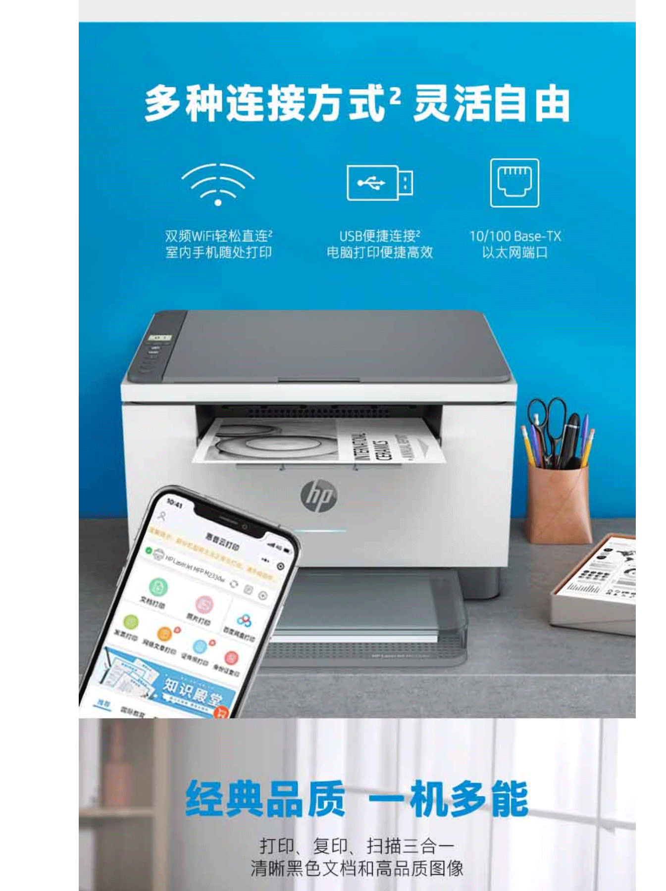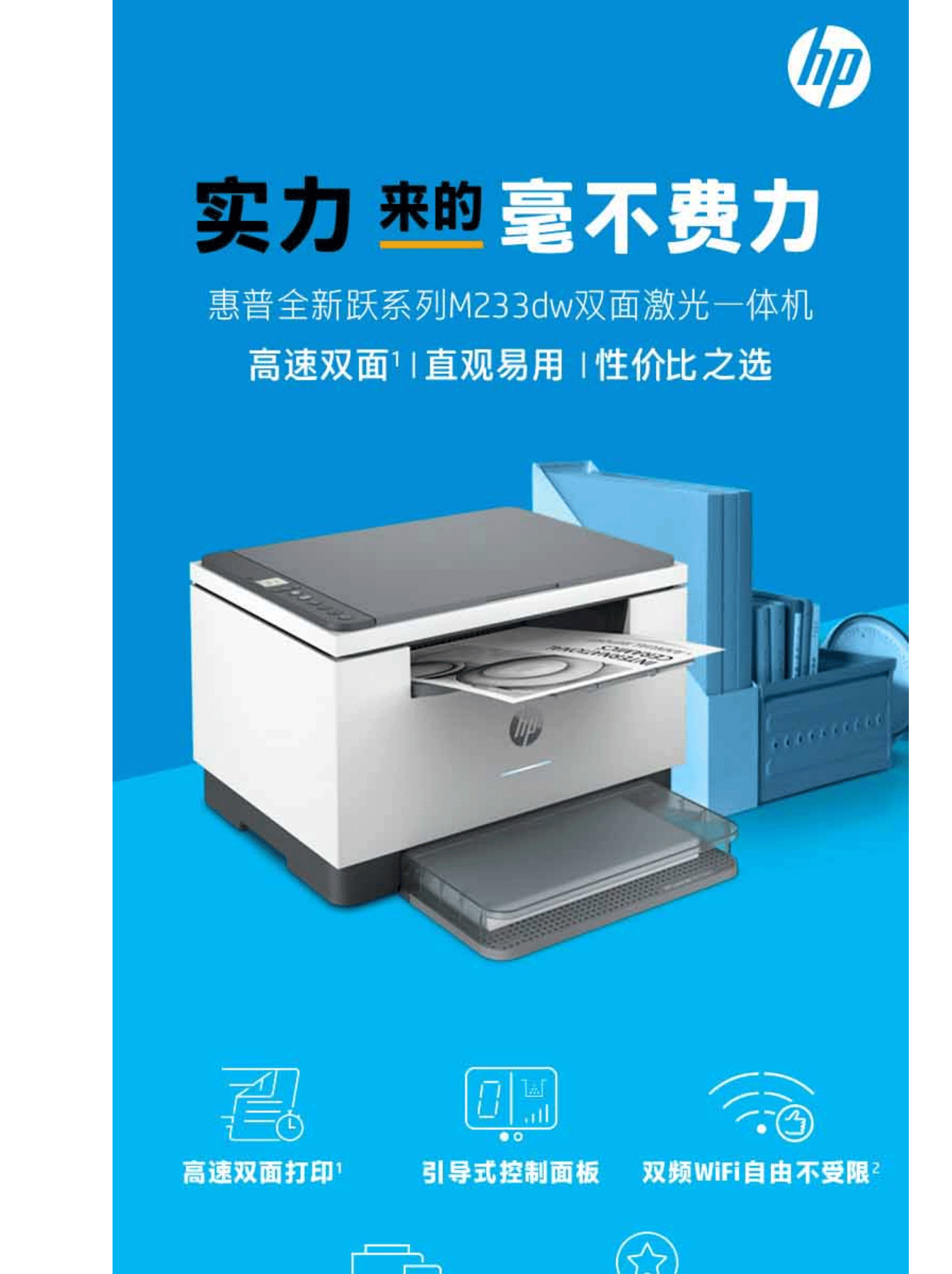 惠普M233dw A4黑白激光一體機:自動雙面 有線/無線打印