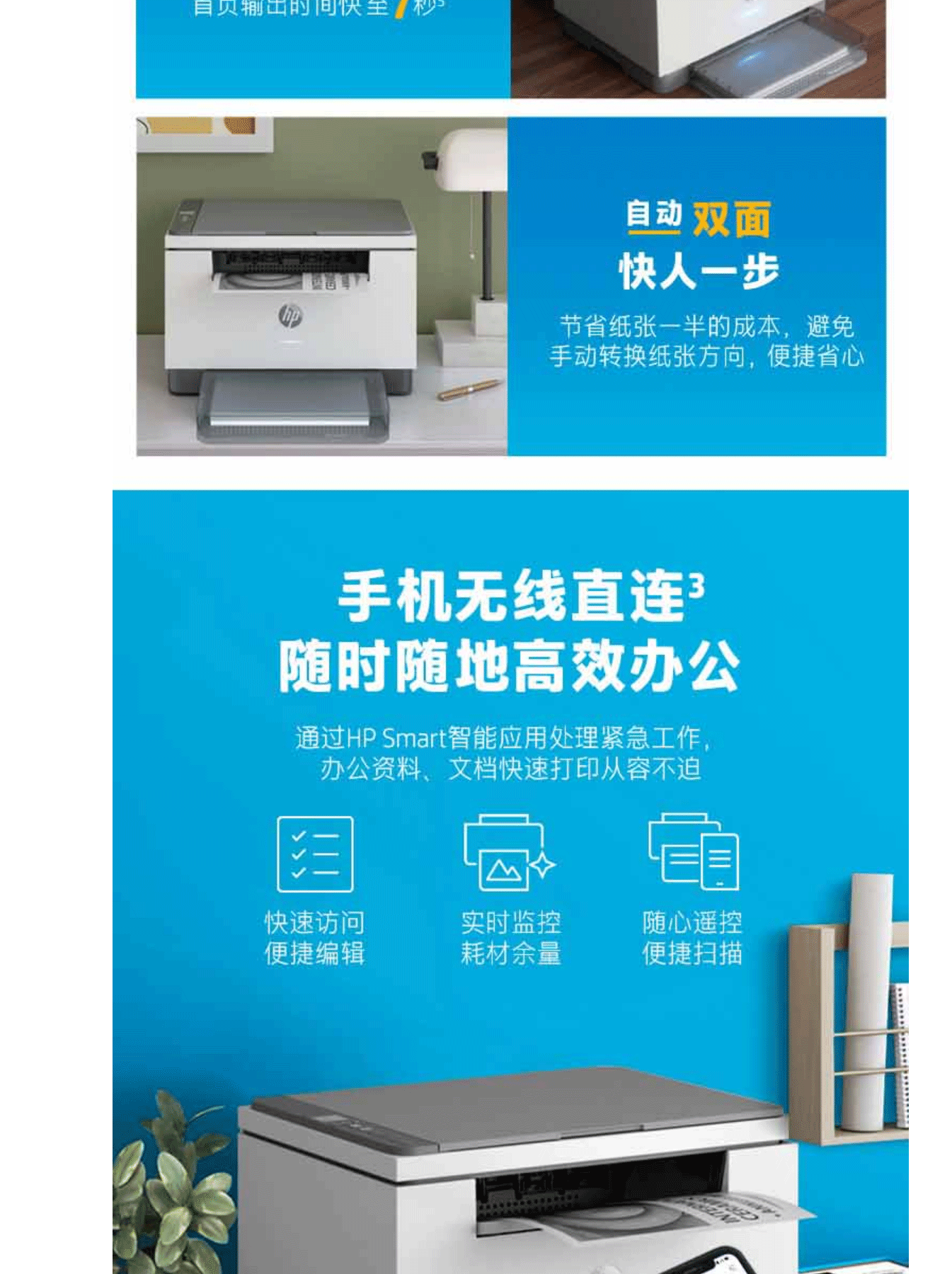 惠普M233sdn A4黑白激光一體機:自動雙面 有線打印