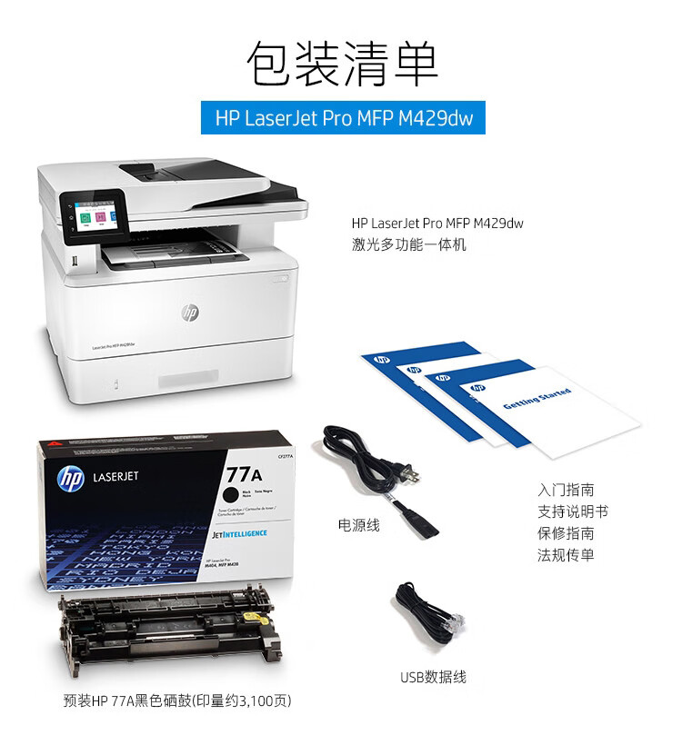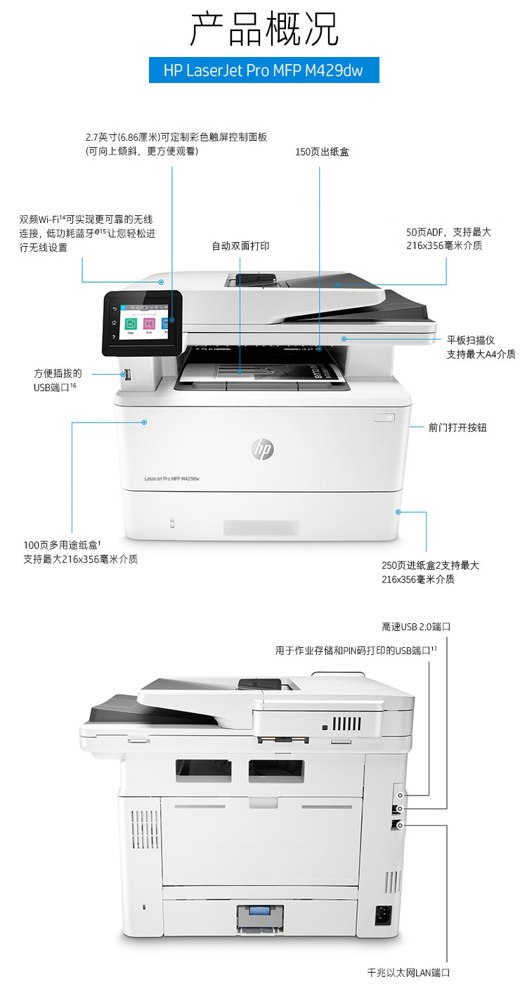 惠普M429dw A4黑白激光多功能一體機(jī):自動雙面 無線打印