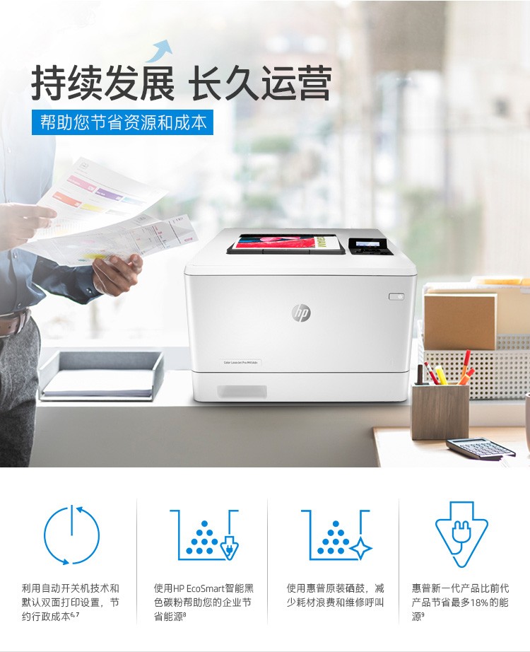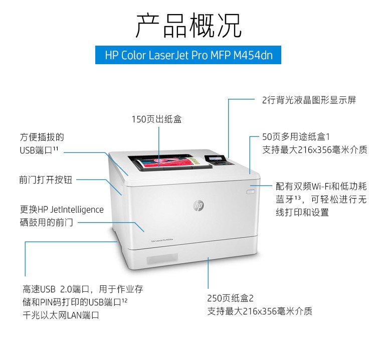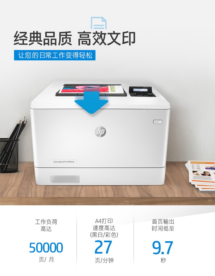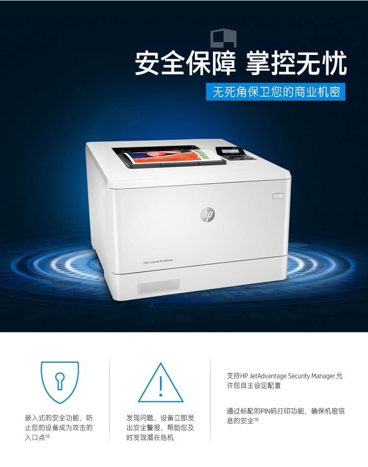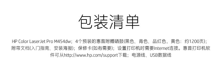 惠普454dn彩色激光打印機:有線網絡及雙面