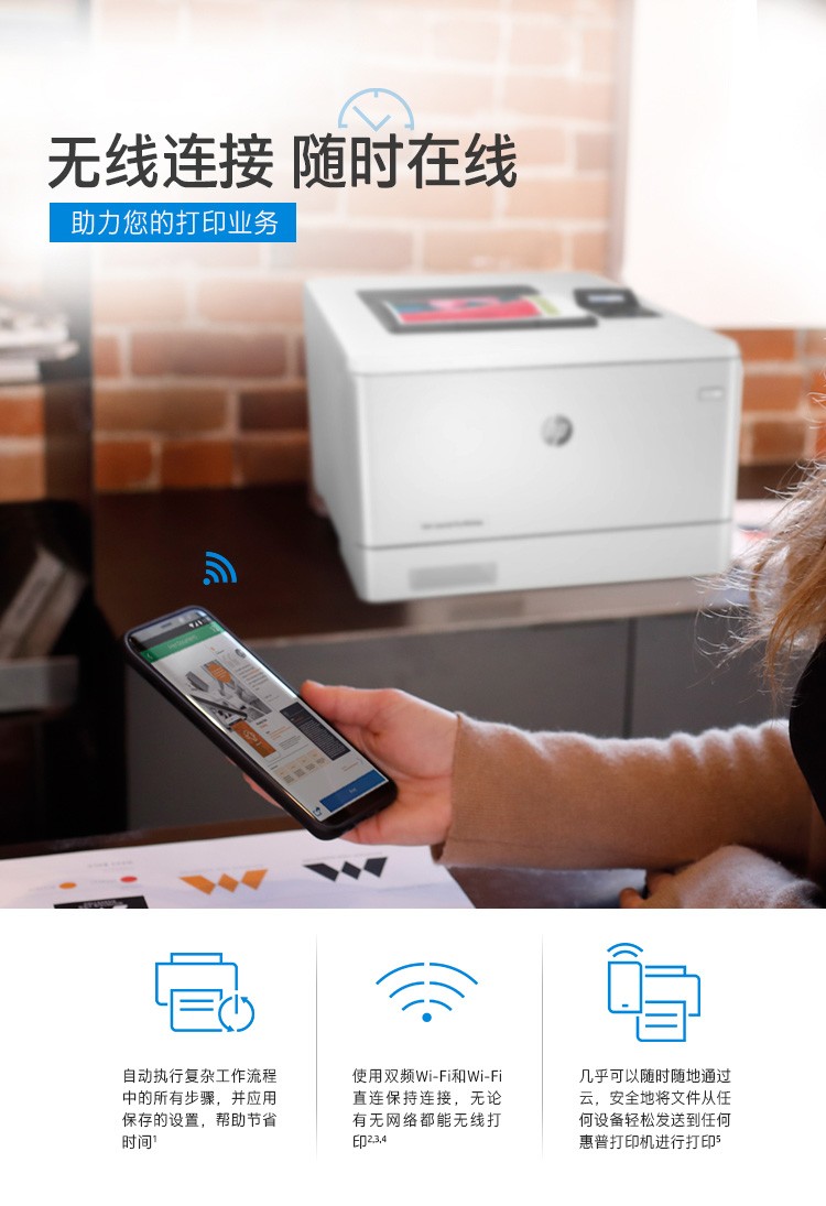 惠普454NW彩色激光打印機:有線/無線打印
