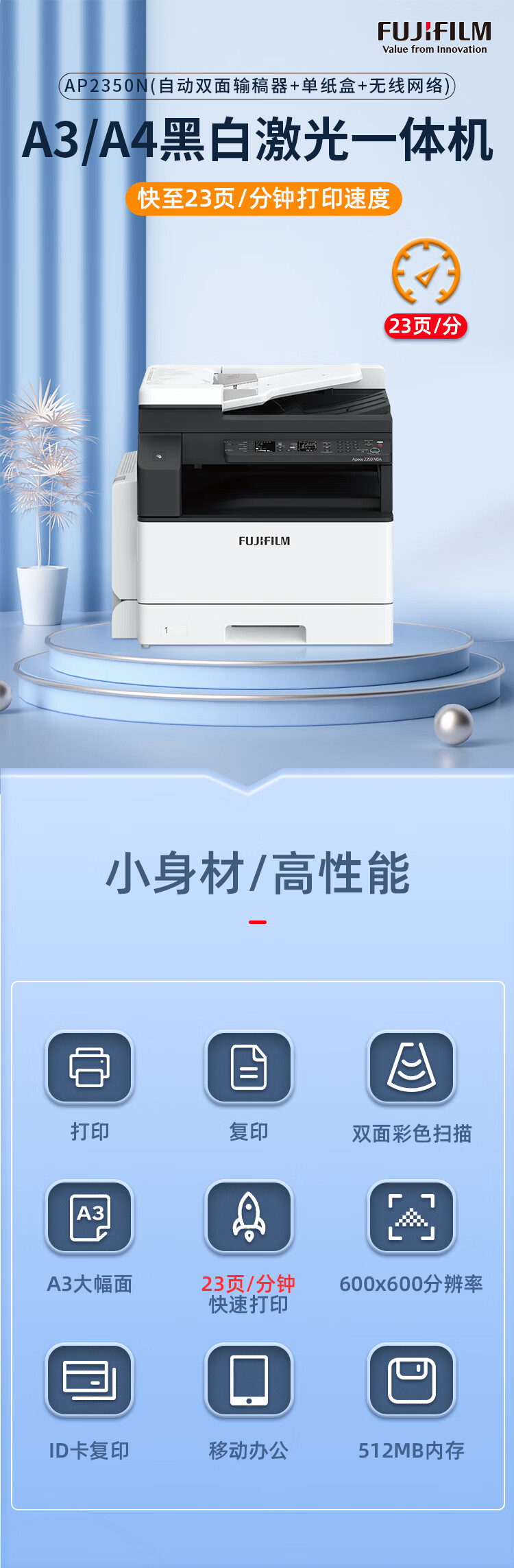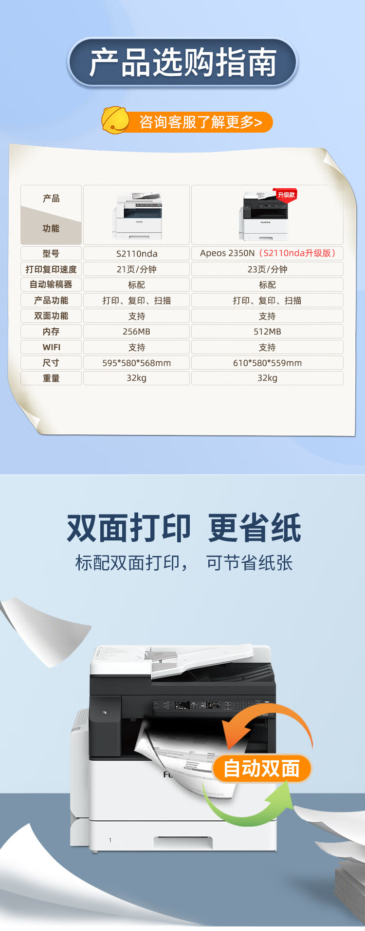 富士膠片Apeos 2350NDA A3黑白復(fù)印機(jī)(雙面、雙面輸稿器、2紙盒)