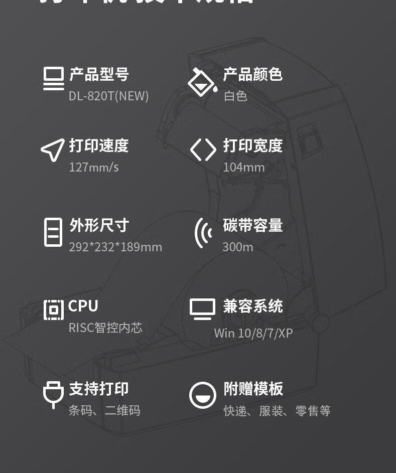 得力DL-820T(NEW)熱轉印標簽打印機(白)