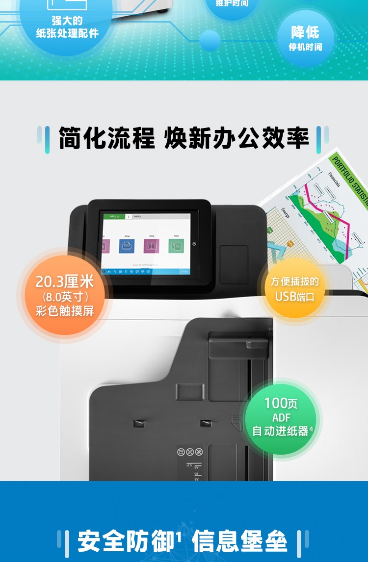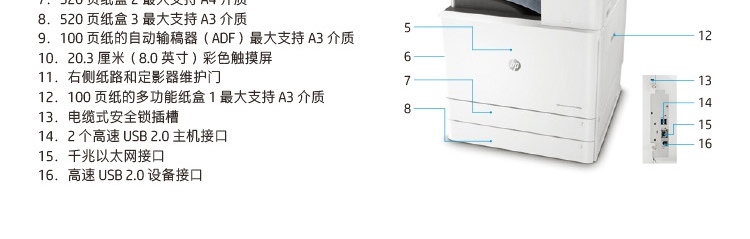 惠普E78228dn A3彩色激光復合機:打印、復印、掃描、雙面器、雙面輸稿器、2紙盒