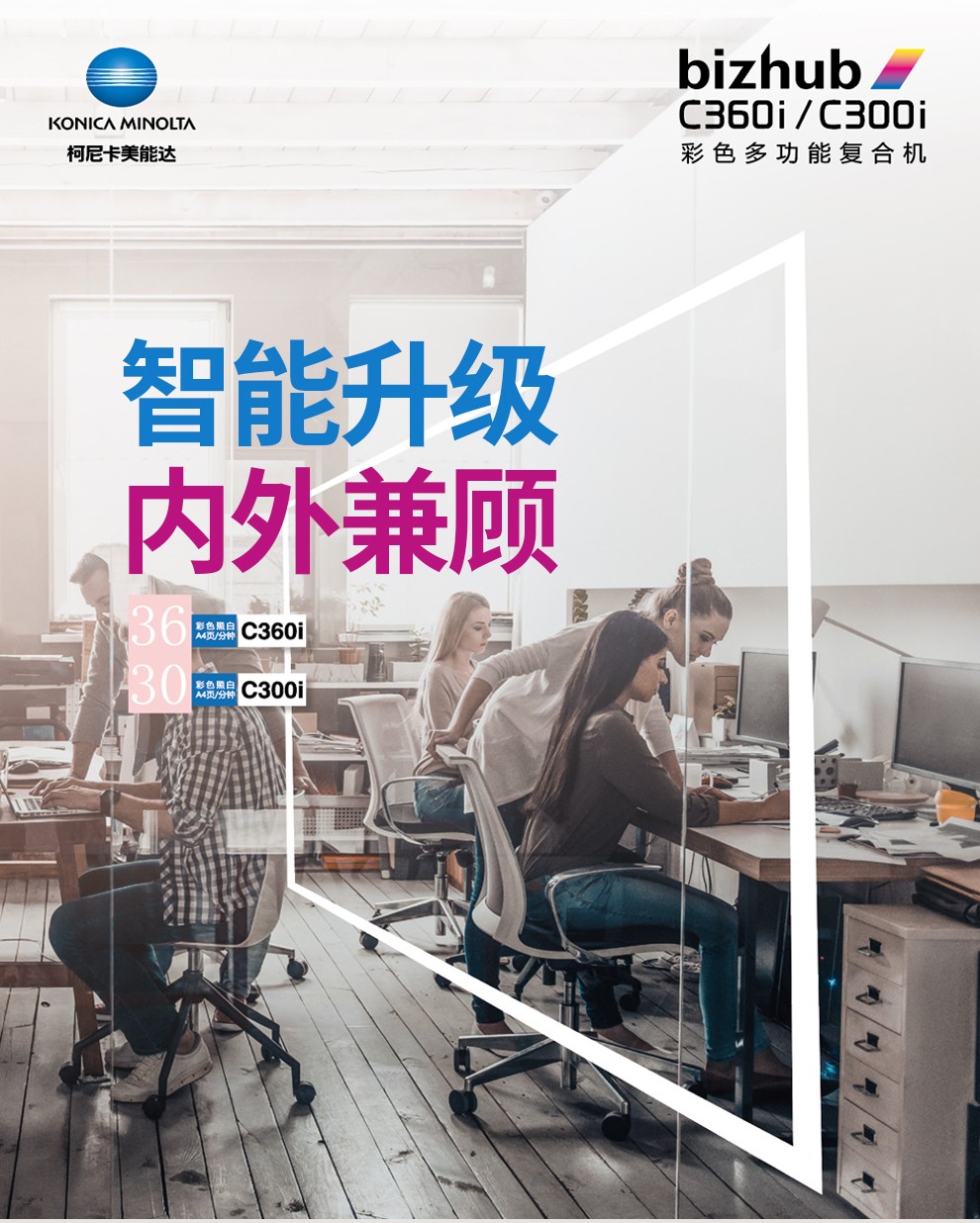 柯尼卡美能達(dá)C300i彩色多功能復(fù)合機(jī):30張、打印、復(fù)印、掃描、雙面器、雙面輸稿器、2紙盒、機(jī)柜