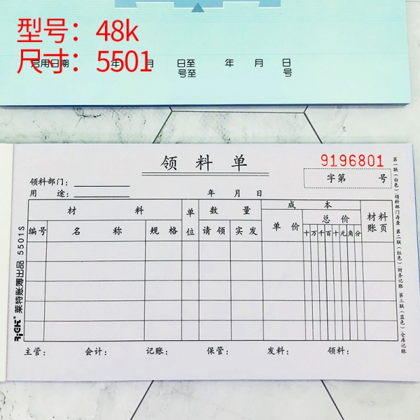 萊特5501三聯(lián)無碳復(fù)寫領(lǐng)料單48K*10
