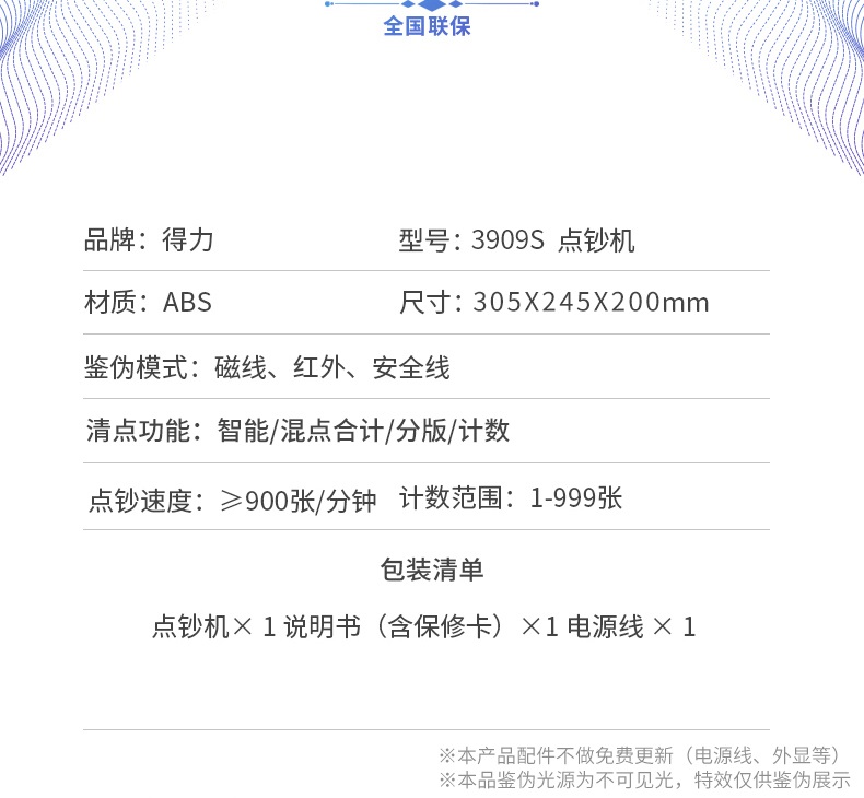 得力3903S點鈔機:智能語音 商用C級 2019年新版