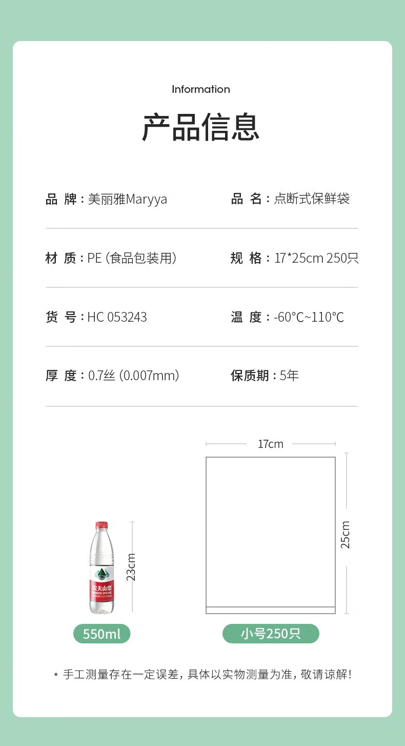 美麗雅HC053243保鮮鮮袋小號25*17CM/250個入