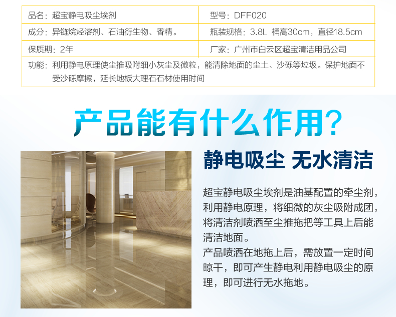 超寶潔亮DF020靜電吸塵埃劑3.8升*4