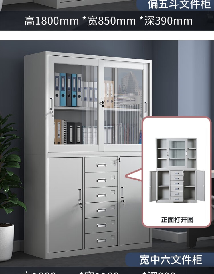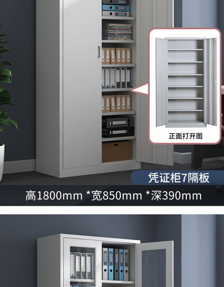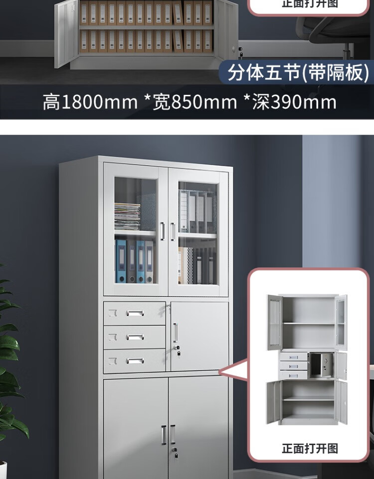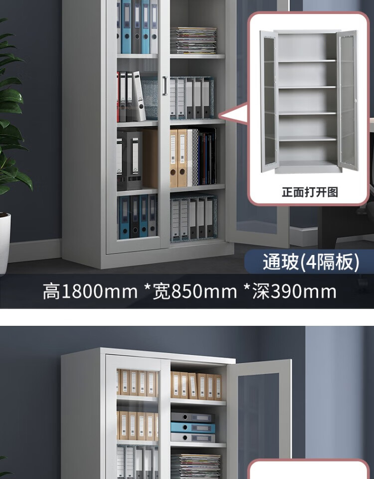 亞光連體多用文件柜1800*850*390MM*0.4