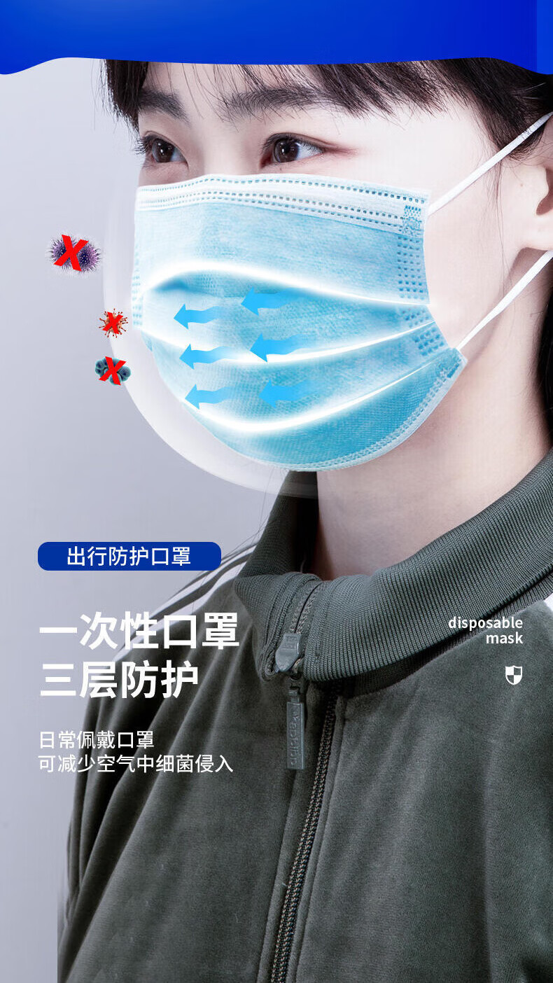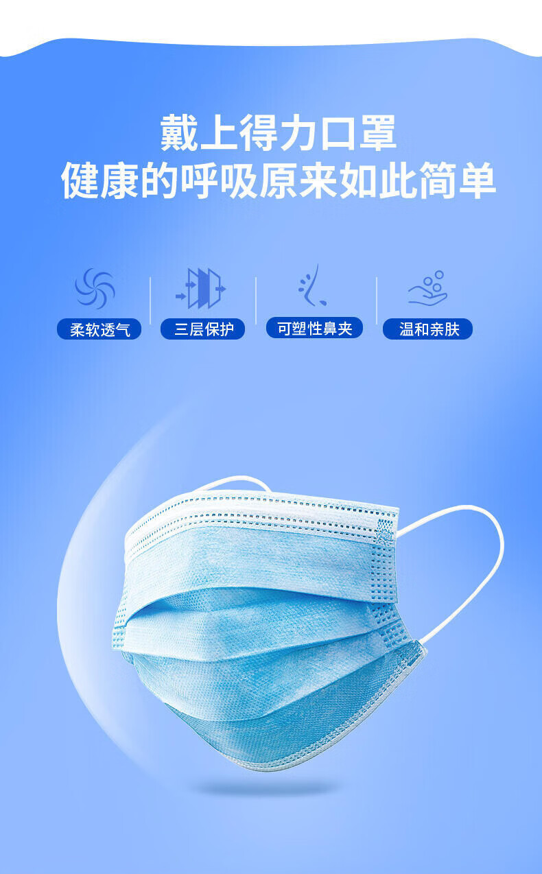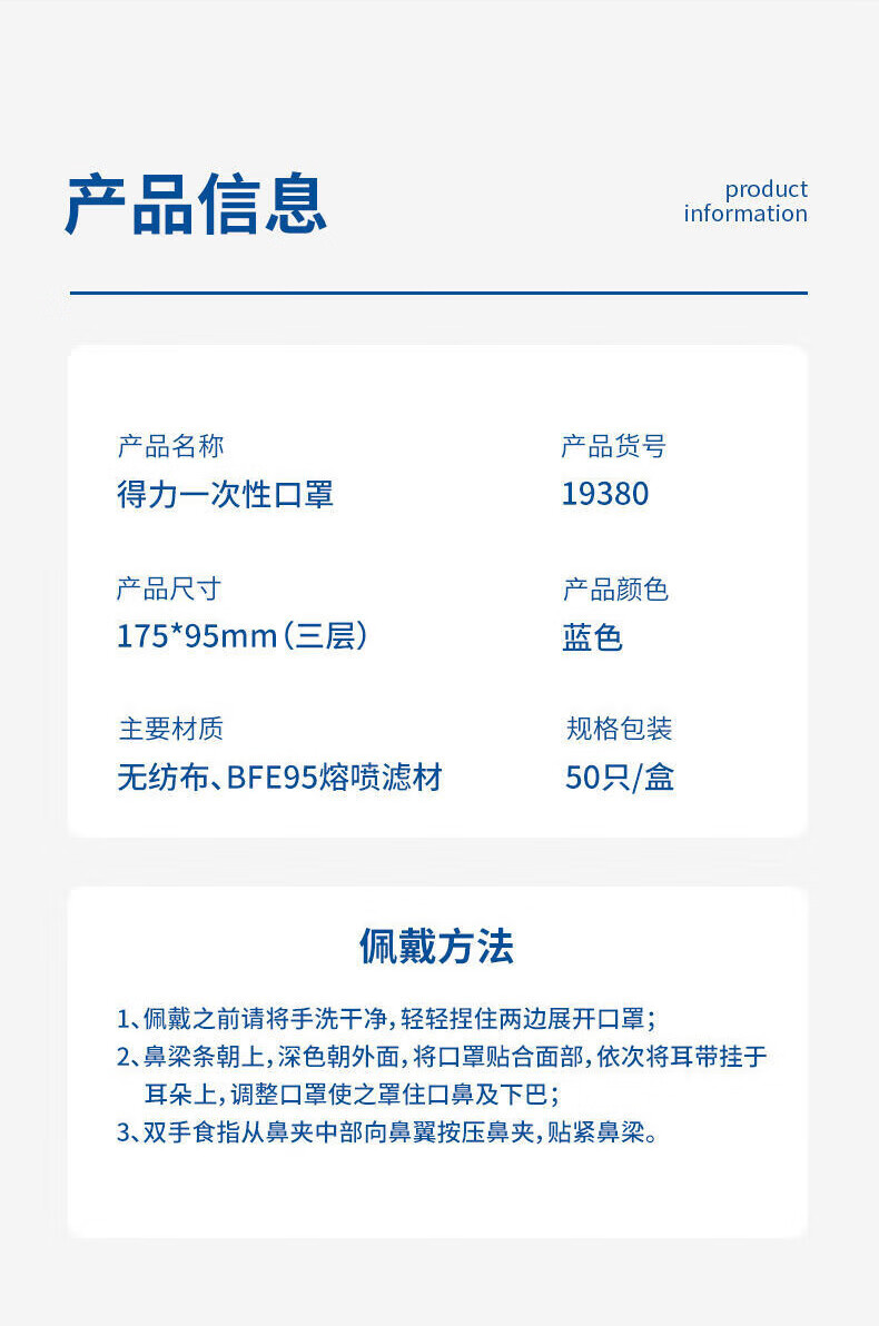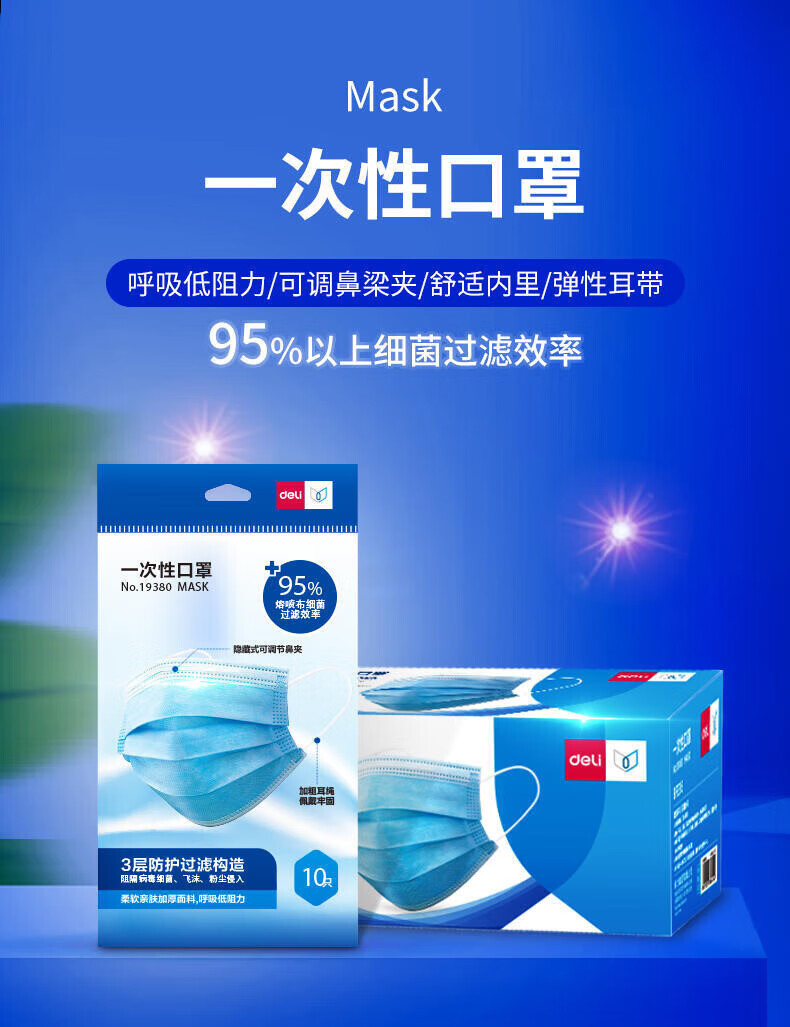 得力19380一次性防護(hù)口罩藍(lán)色*10只