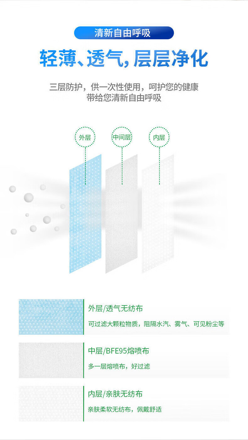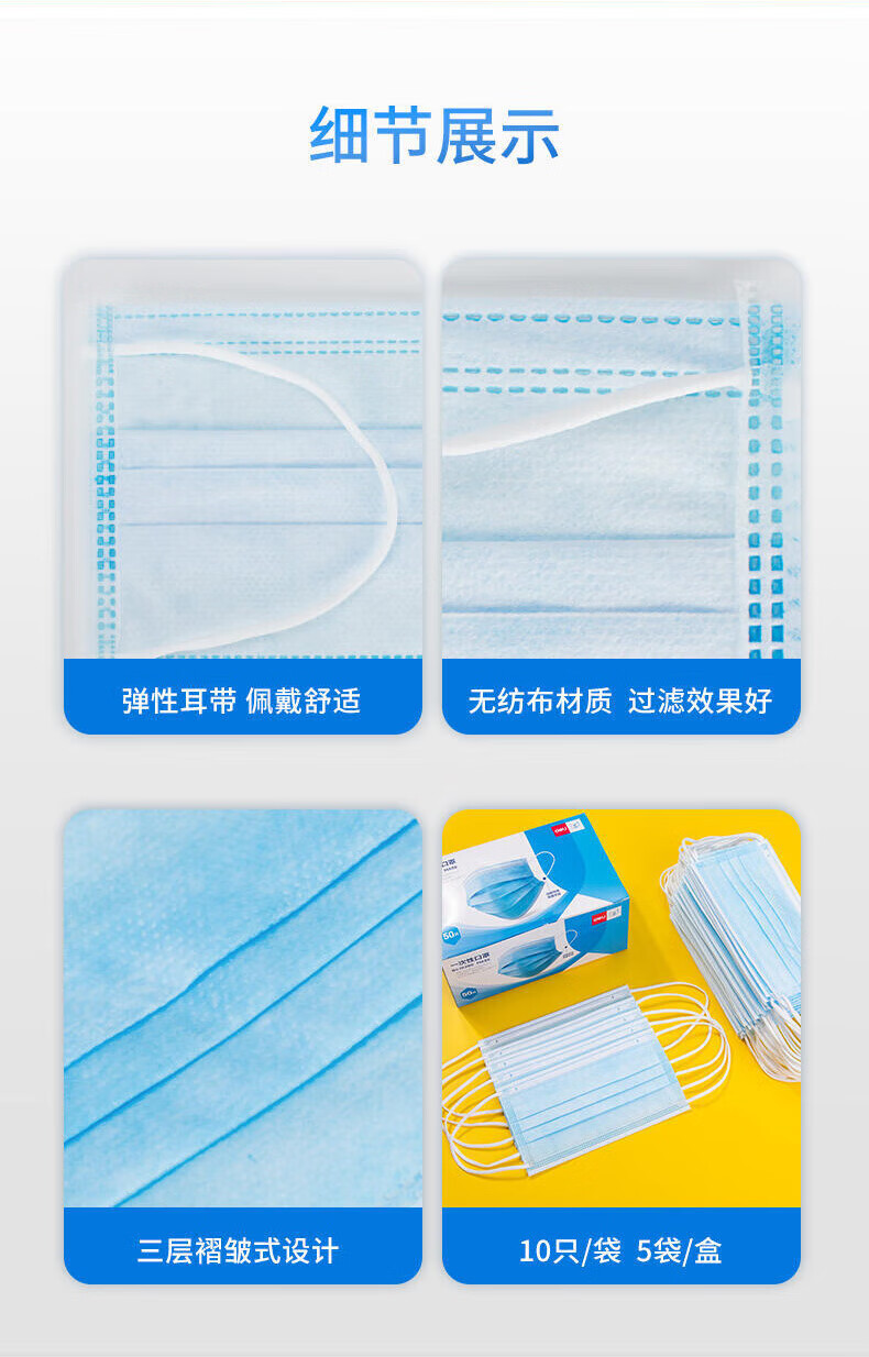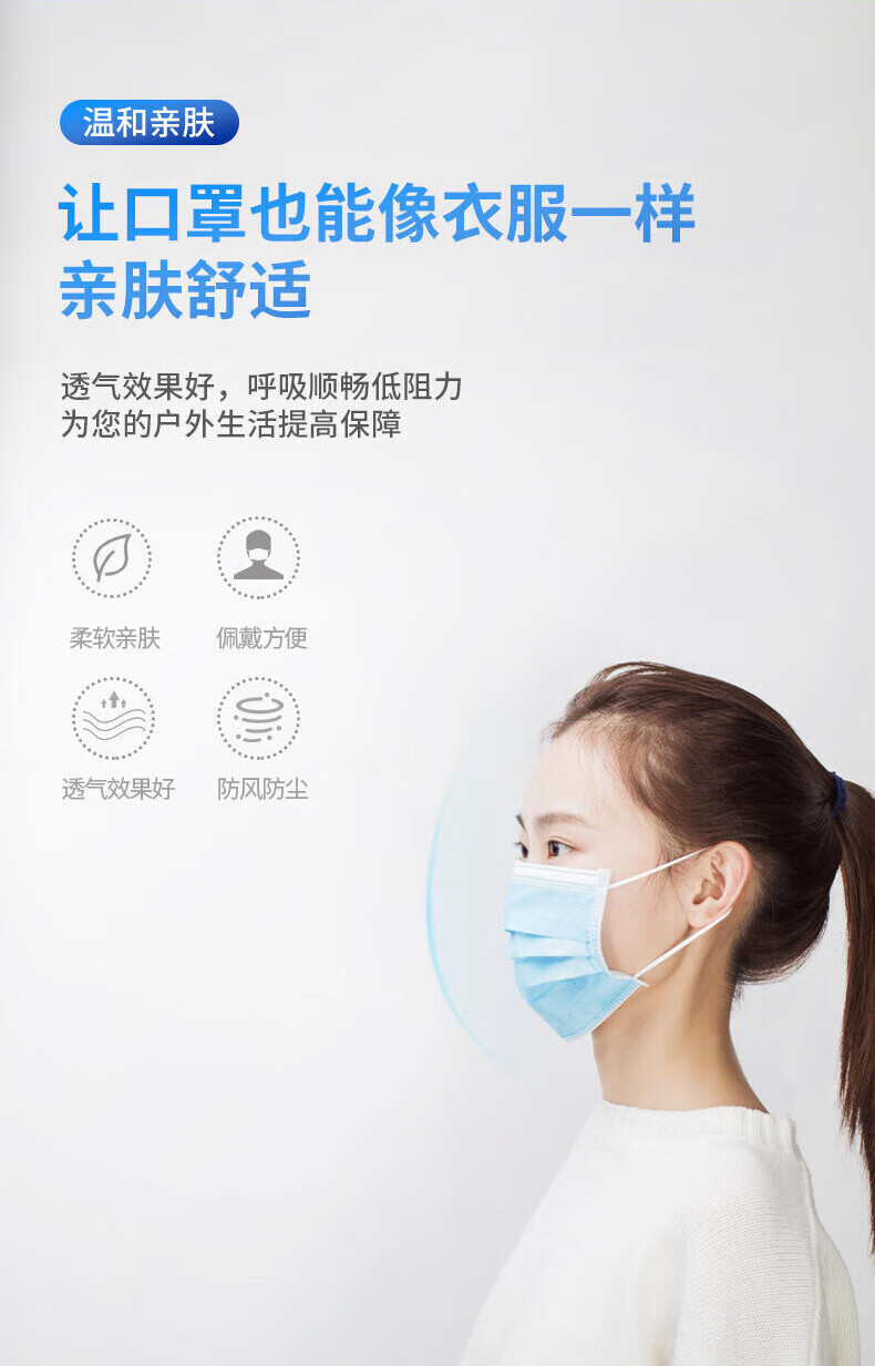 得力19380一次性防護(hù)口罩藍(lán)色*10只