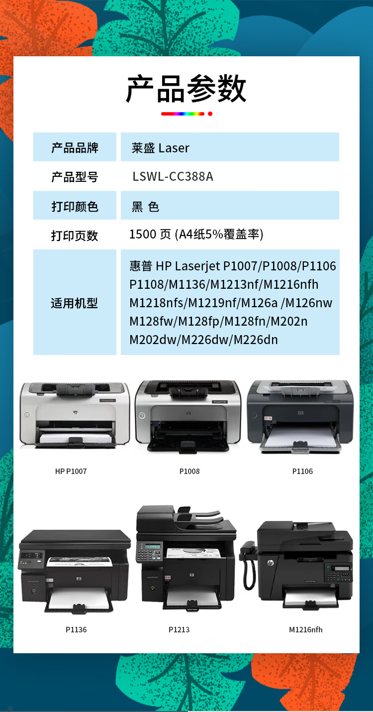 萊盛CC388A 88A硒鼓m126a墨盒 適用惠普P1007 1008 1106 1108 M1136 1213nf 1216 1218nfs 1219nf M126a