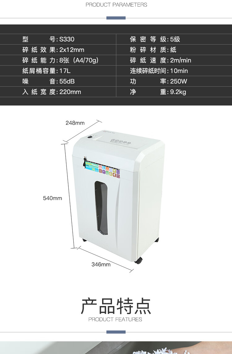 齊心S330強(qiáng)力保密型碎紙機(jī)17L
