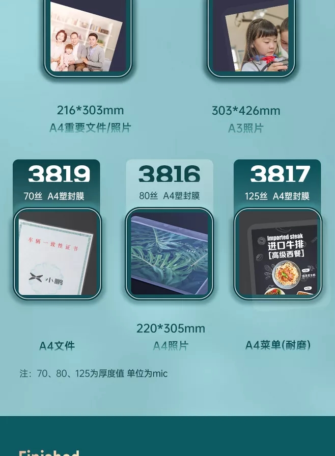 得力3816塑封膜A4 8S(透明)(100片/包)