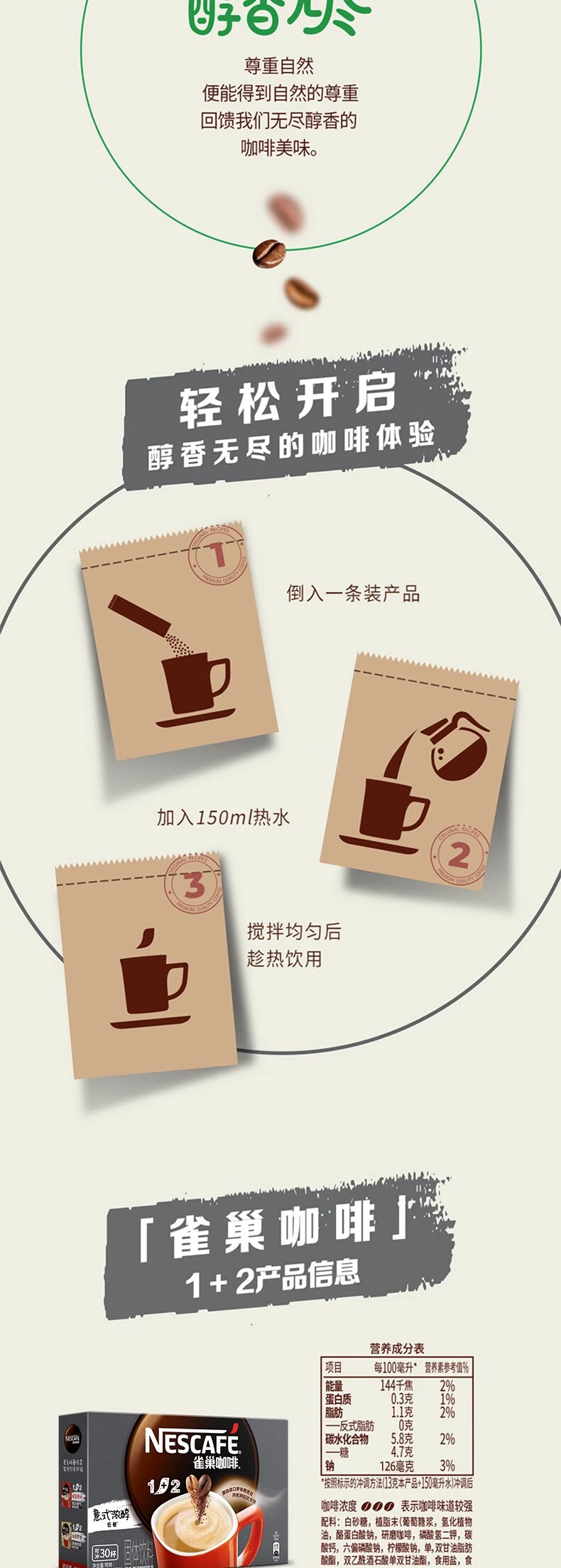 雀巢咖啡1+2特濃速溶咖啡7*13g