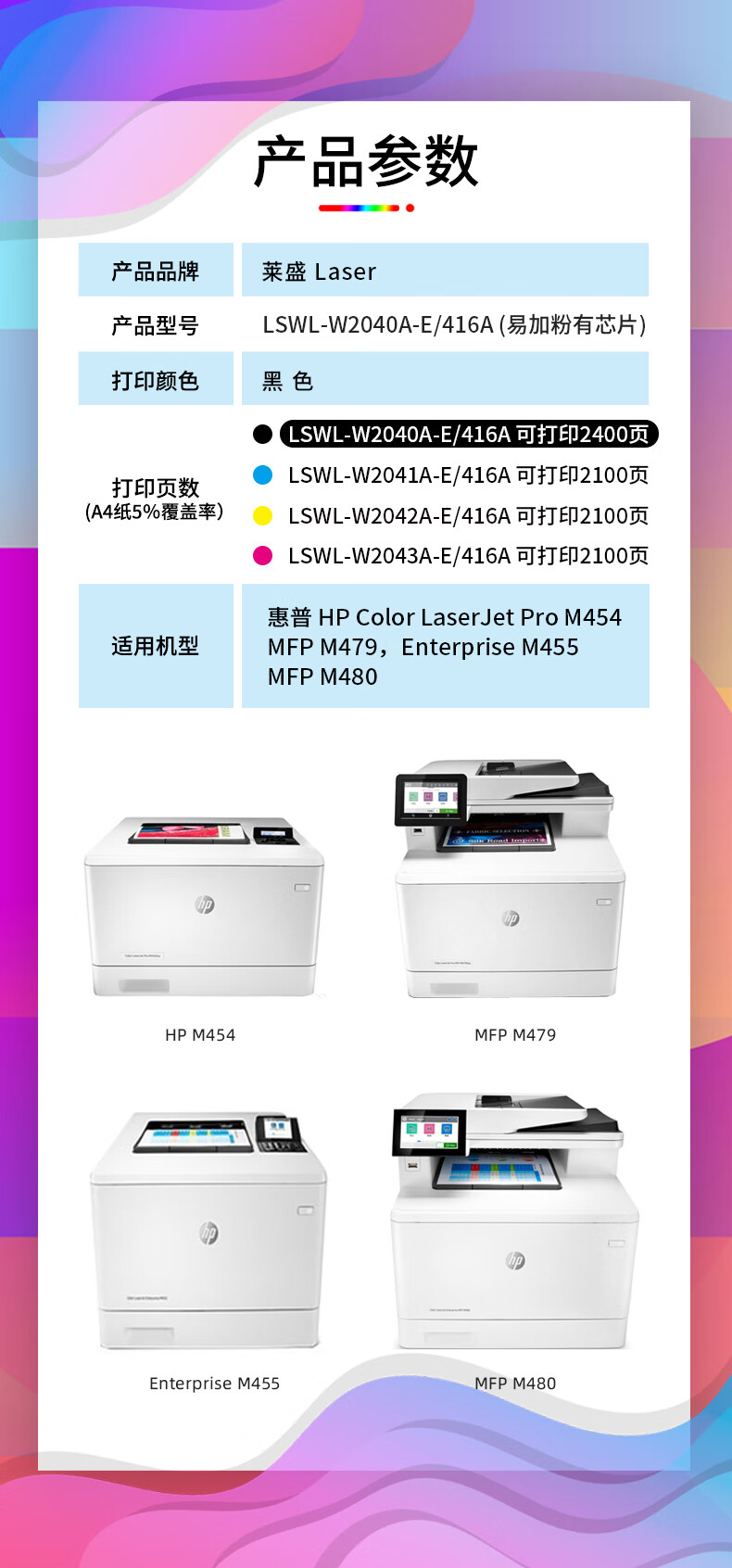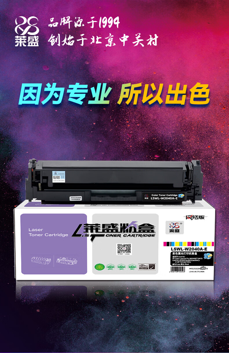 萊盛 LS-W2040A(416A)彩色激光打印機粉盒 黑色 全新 有芯片 2.4K 12支/箱