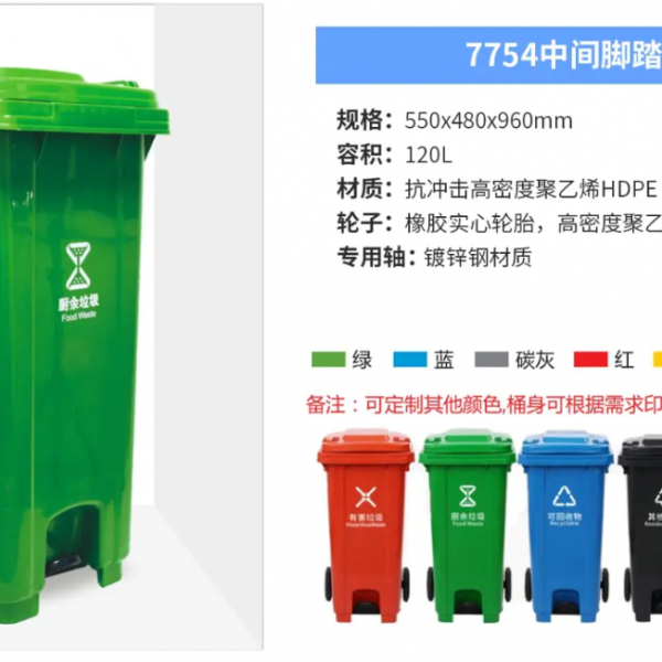 恒豐7754-120L中間腳踏垃圾桶530*490*970mm(黃色)