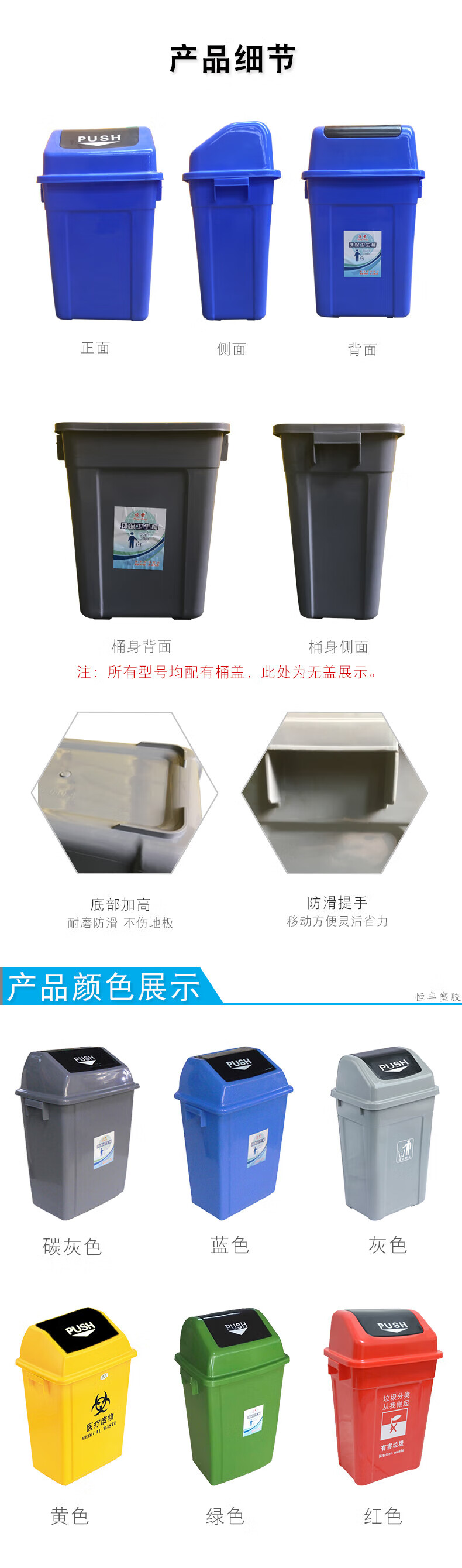 恒豐0351生活垃圾桶粉藍(lán)色(230*265*350)