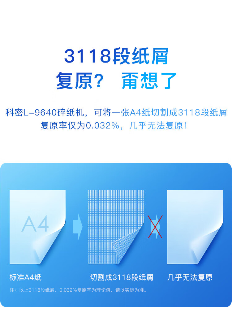科密L-9660 5級保密辦公商用碎紙機(單次18張 持續120分鐘 36L 可碎卡、光盤、訂書針)
