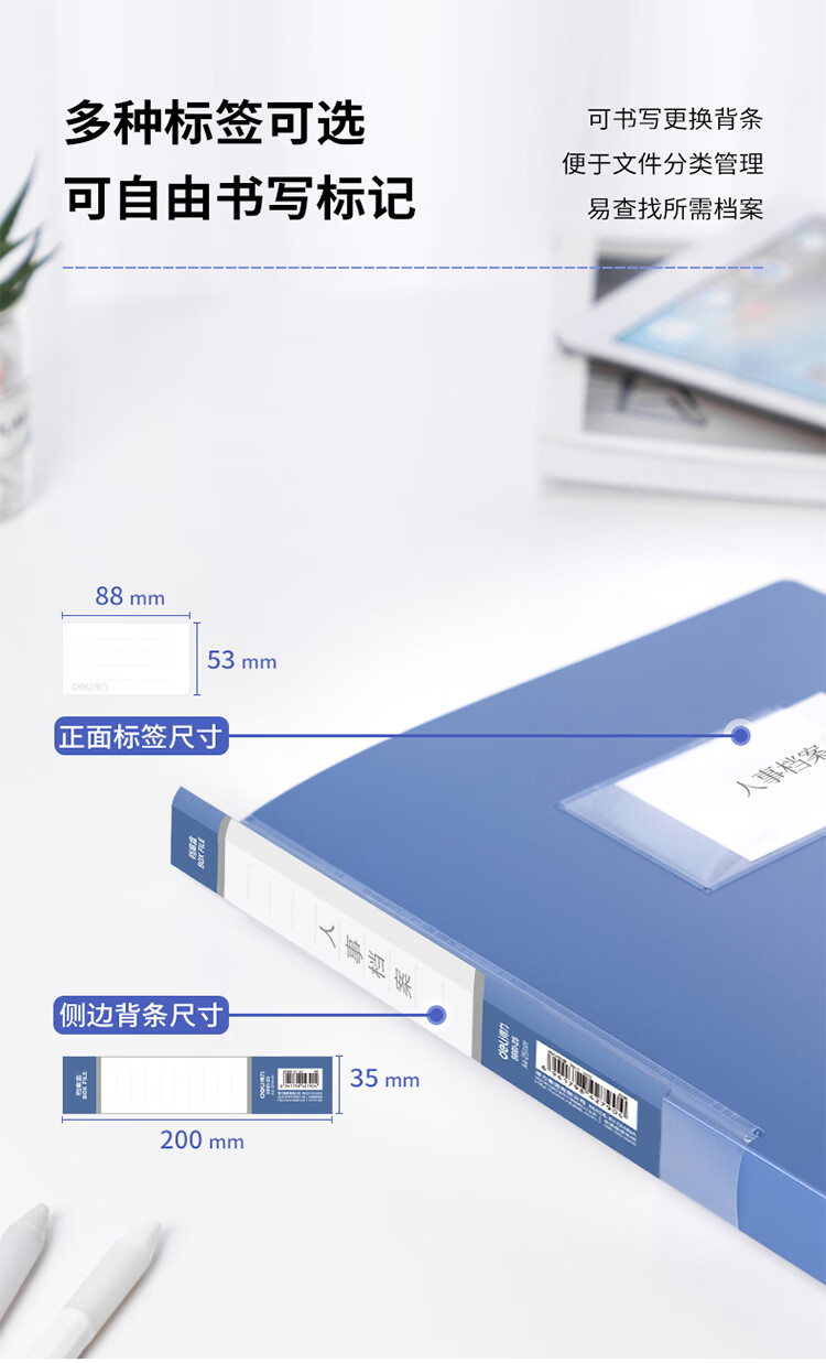 得力5662-35檔案盒-背寬35MM(藍)