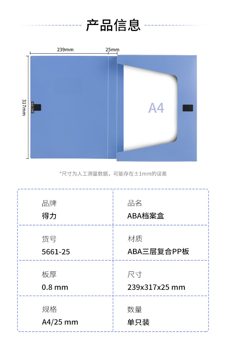 得力5661-25檔案盒-背寬25MM(藍)