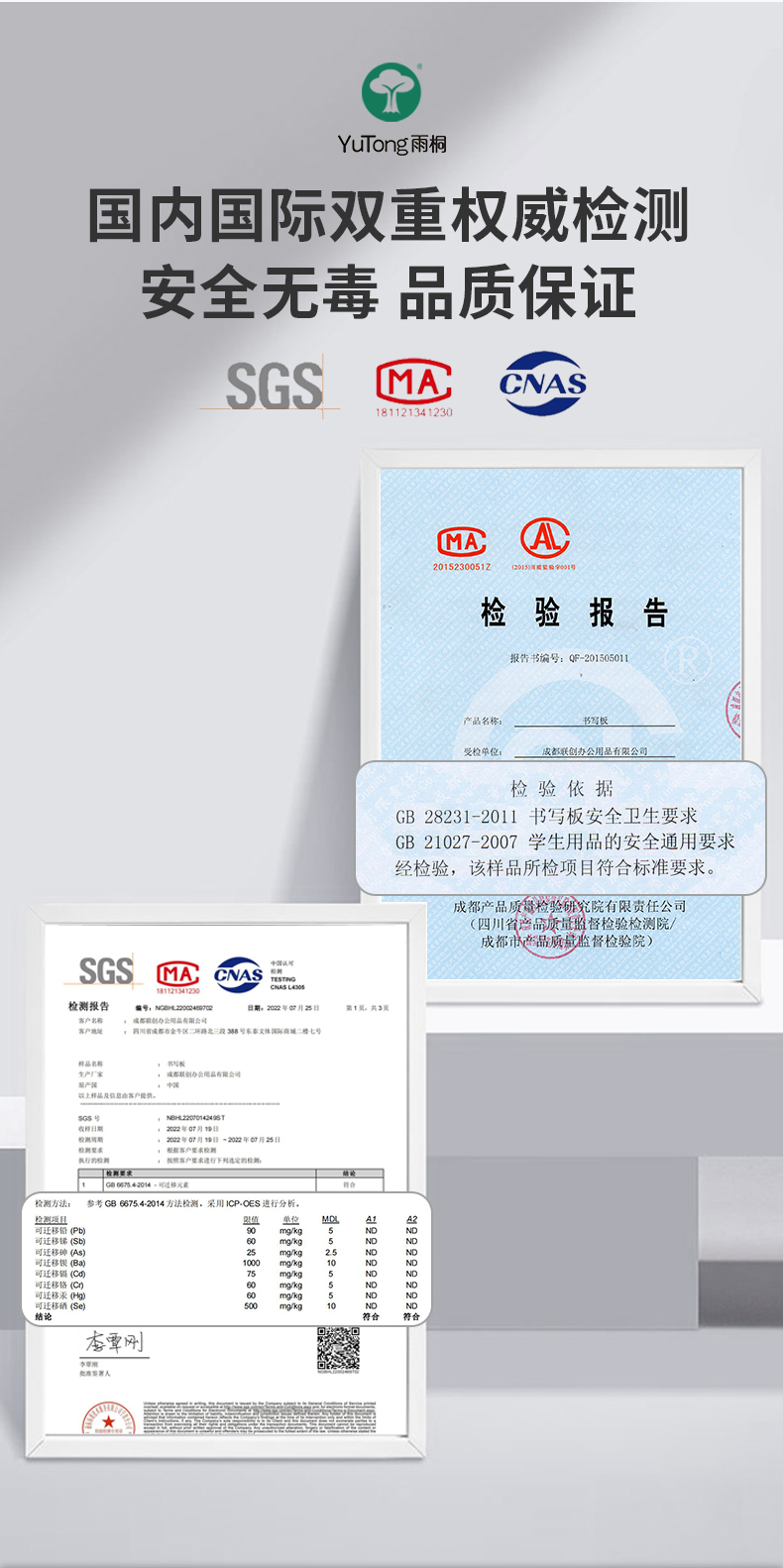 雨桐單面鋅背白板120*150cm(含白板架)