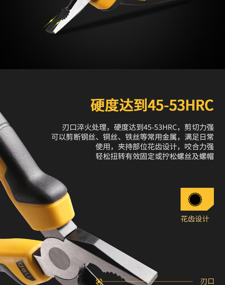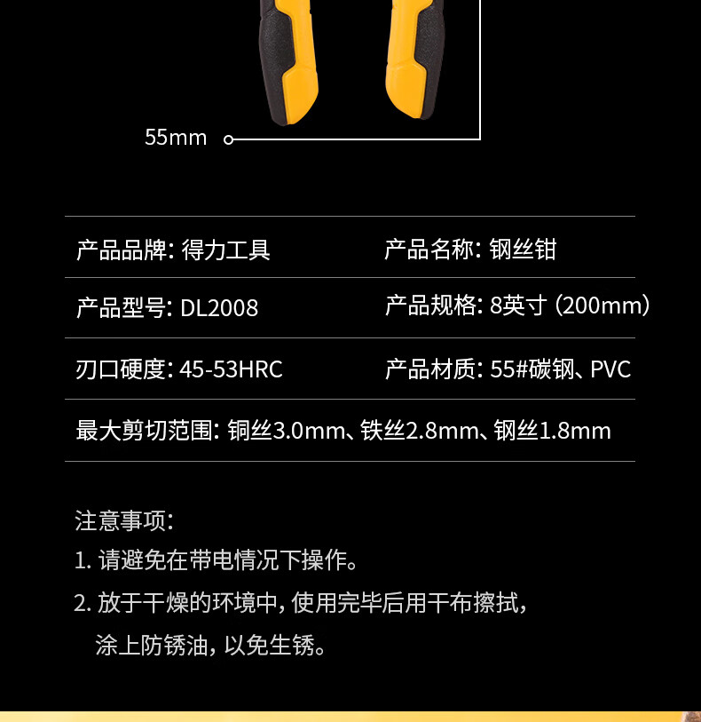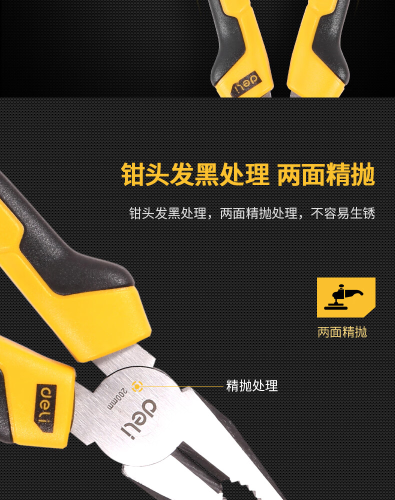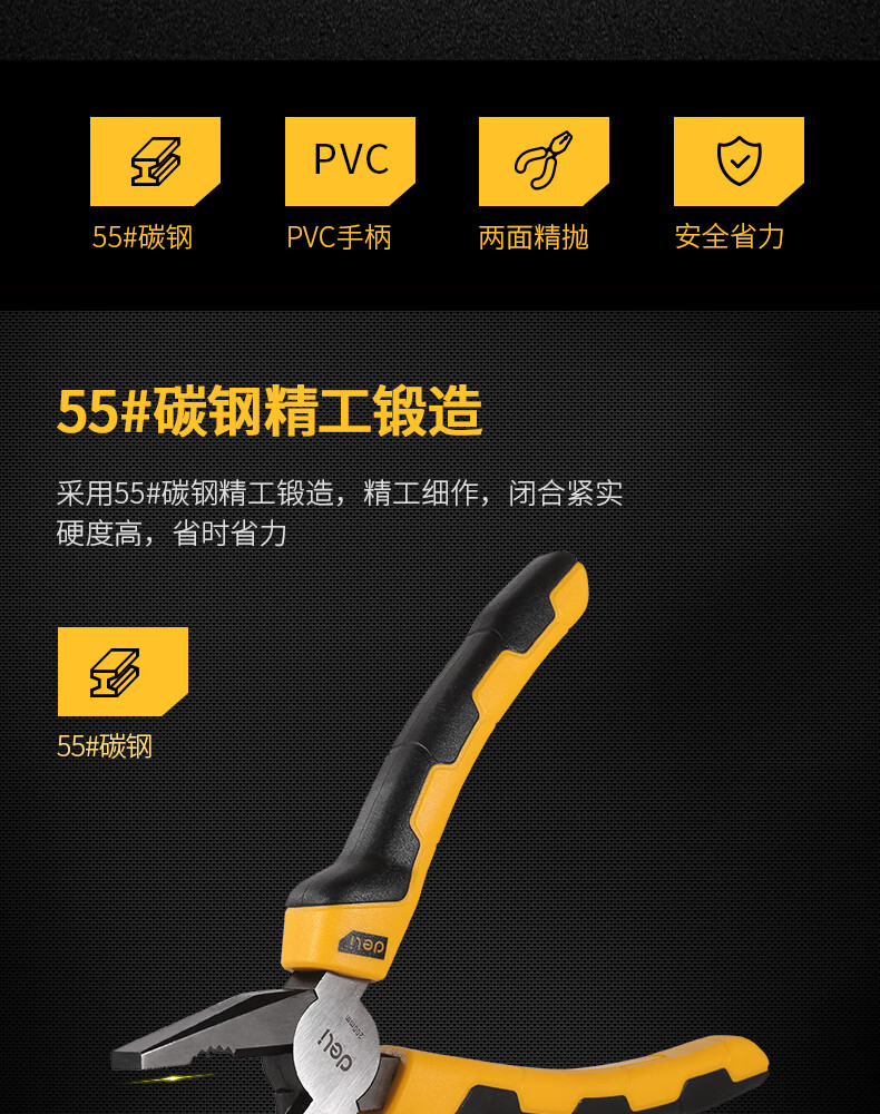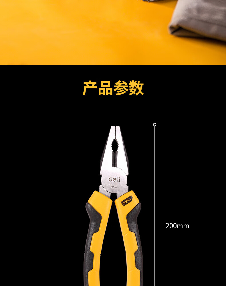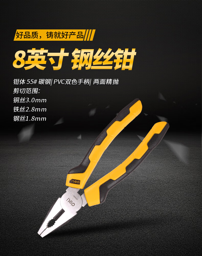 得力老虎鉗鋼絲鉗平口鉗電工五金工具8寸DL2008