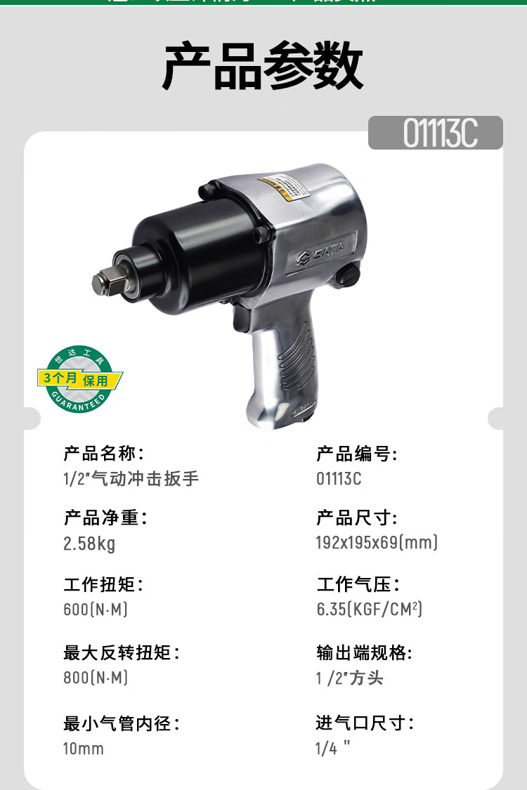 世達(SATA)01113C氣動沖擊扳手大扭力工業沖擊風炮機套筒汽修風動工具
