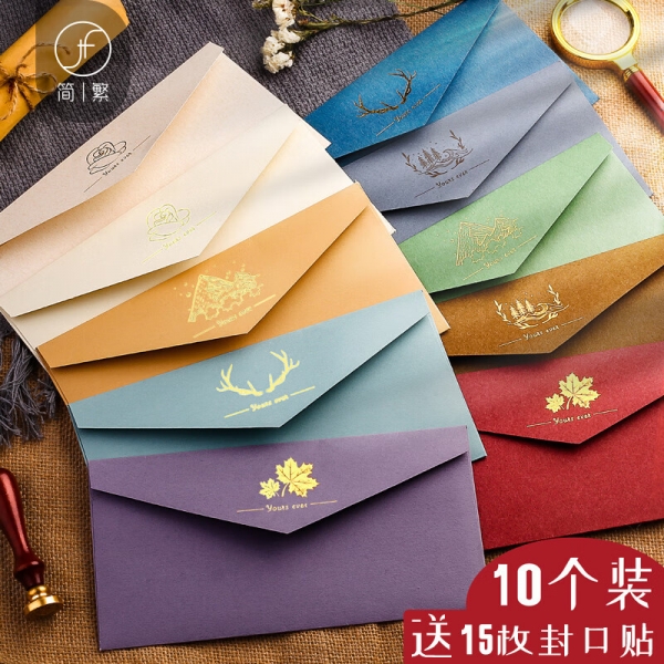 簡繁 10色混裝簡約復古信封信紙手寫信箋紙賀卡明信片送老師生日禮物邀請函