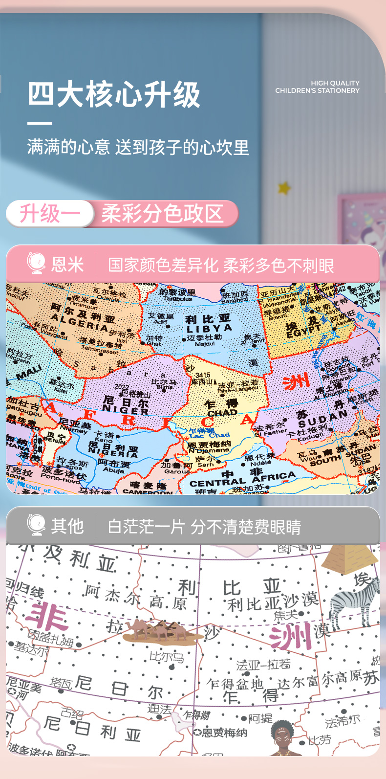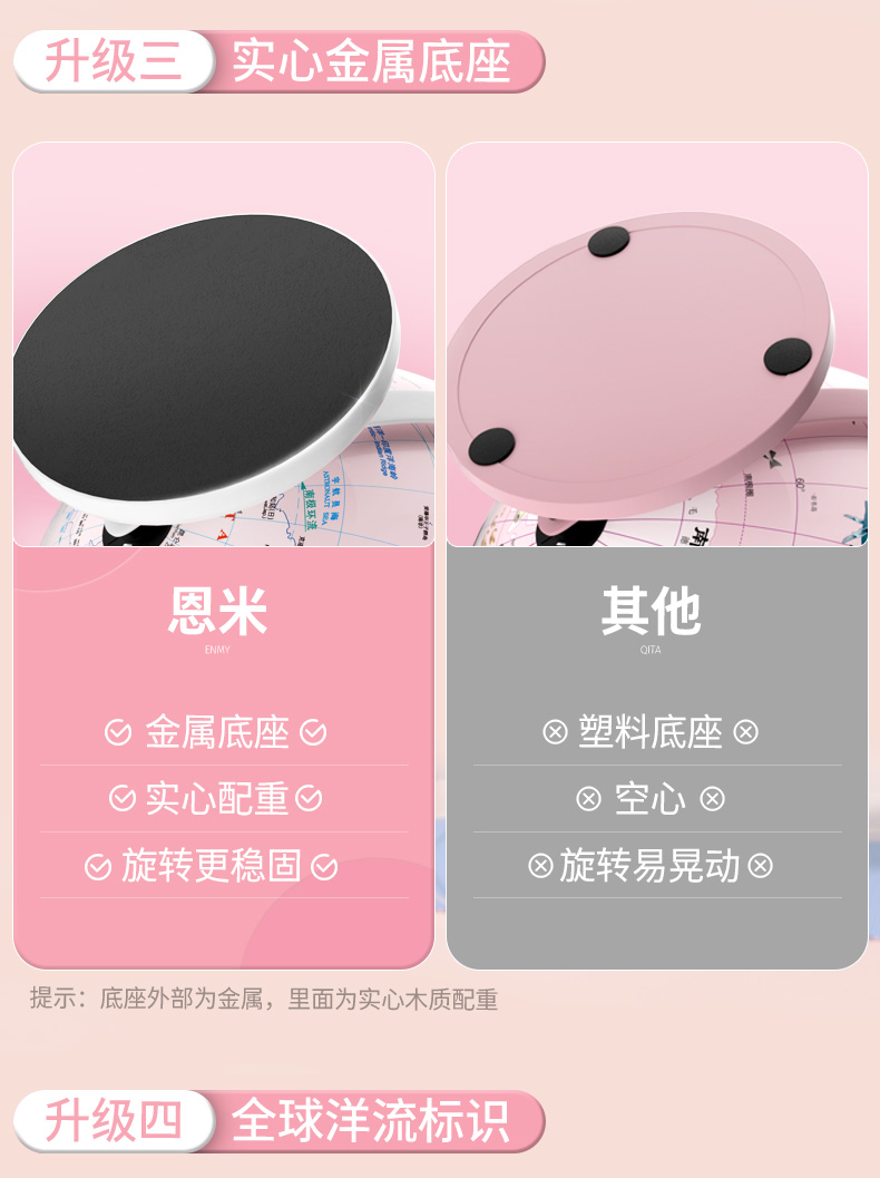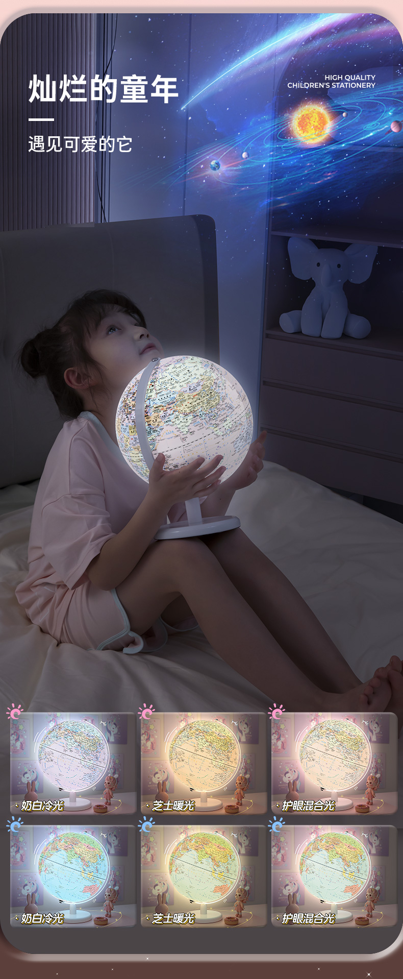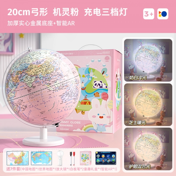 恩米科技YSE38-金屬底座馬卡龍藍地球儀-20cm-弓形扁鐵支架-三檔燈帶AR-童趣禮盒裝