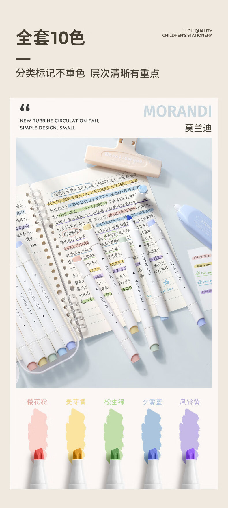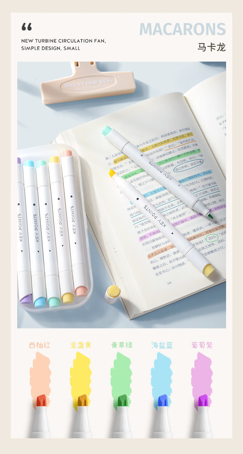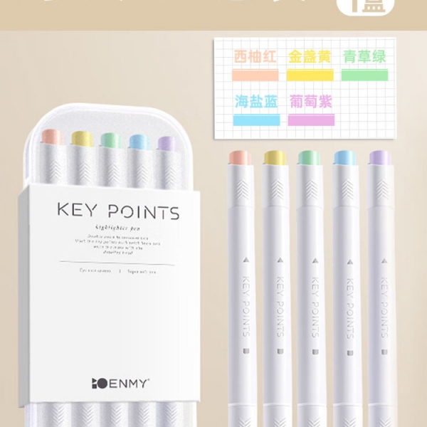 簡(jiǎn)繁 5色莫蘭迪圓桿熒光筆套裝 新型軟頭彩色水性記號(hào)筆學(xué)生課堂重點(diǎn)標(biāo)記筆大容量雙頭手賬筆 開(kāi)學(xué)文具禮物